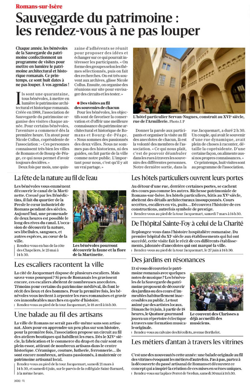 Notre programme de printemps a été exposé dans une rubrique du Dauphiné Libéré le 4 mars 2026. Vous pouvez lire cet article dans notre page consacrée à la presse ou en cliquant sur la photo.